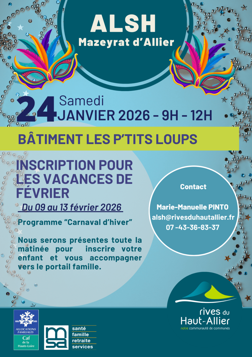 Les inscriptions sont ouvertes pour l'accueil de vos enfants dans les centres de loisirs de Langeac et Mazeyrat d'Allier pour les prochaines vacances de février du 09 au 13 février 2026.
