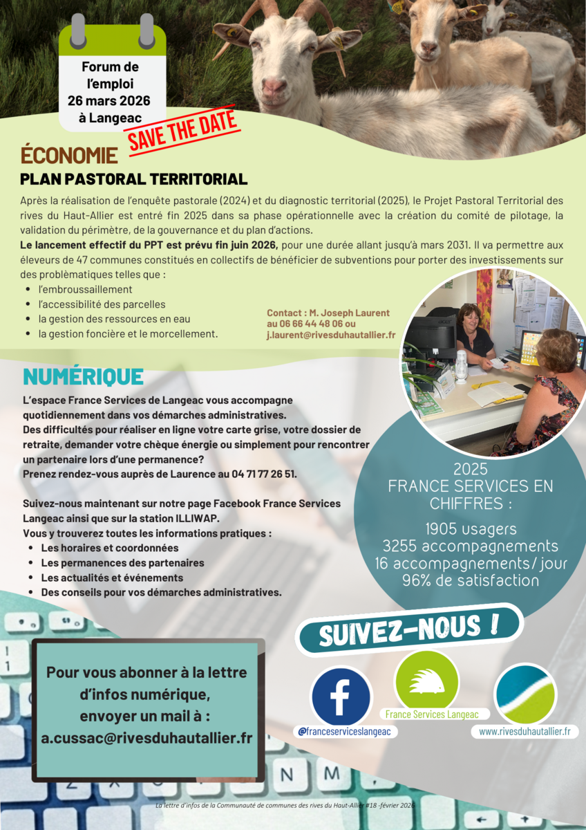 Pour vous abonnez, faites un mail à a.cussac@rivesduhautallier.fr