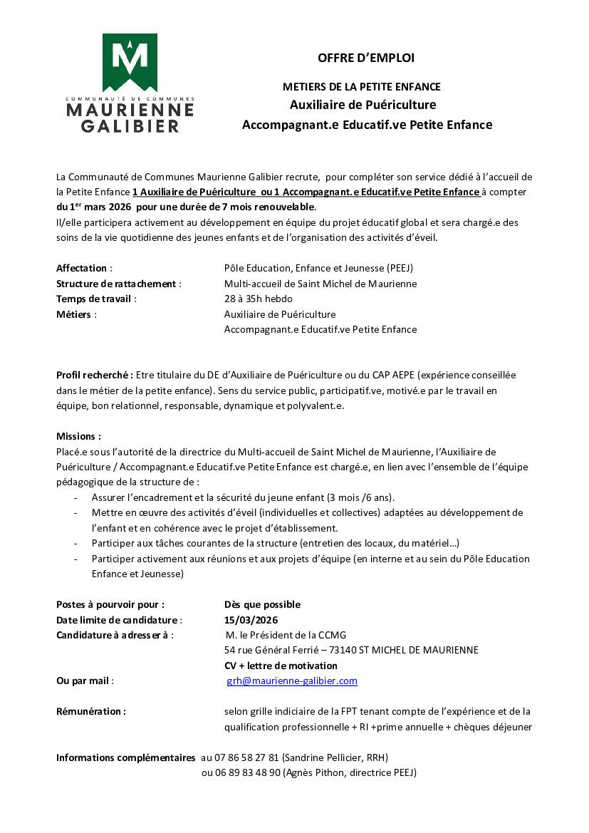📢 OFFRE D’EMPLOI – Petite Enfance