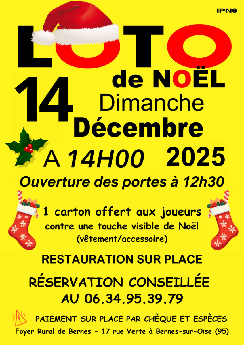 Loto dimanche 14 décembre- FR BERNES 11/17/25 ouverture des portes à 12h30 Début du loto à 14h Source : Fédération Départementale des Foyers Ruraux du Val d'Oise