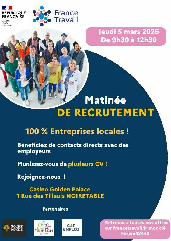 Il est possible de s’inscrire via https://mesevenementsemploi.francetravail.fr/mes-evenements-emploi/evenement/581548/matinee-de-recrutement-beneficier-de-contacts-directs-avec-les-employeurs-locaux-noiretable
