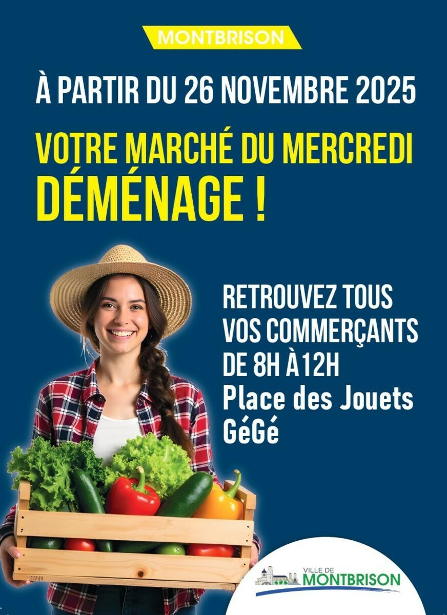 À partir du 26 novembre 2025, retrouvez tous vos commerçants de 8h à 12h à la Place des Jouets GéGé, sous la halle, à seulement 250 mètres de l’emplacement habituel.