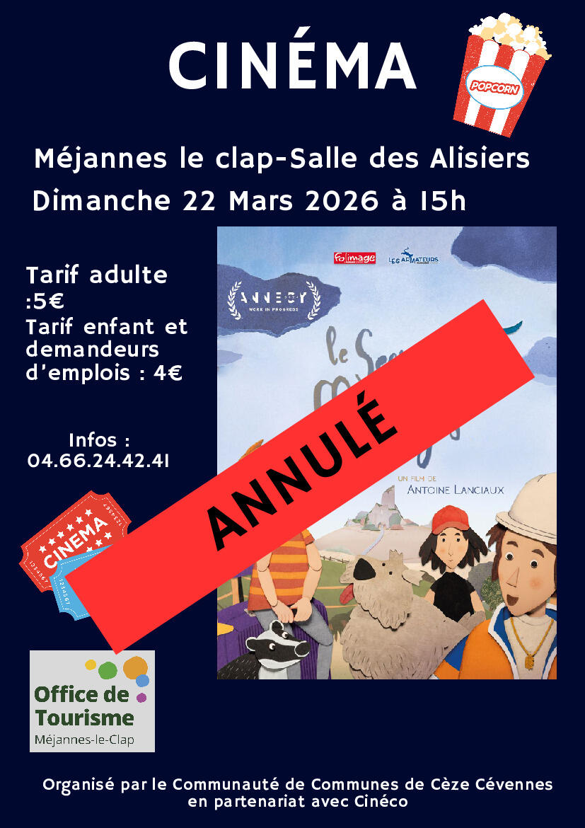 ⚠️SEANCES DE CINEMA ANNULEES 3/20/26 La double séance de cinéma prévu ce dimanche 22 mars est annulée. Merci pour votre compréhension.