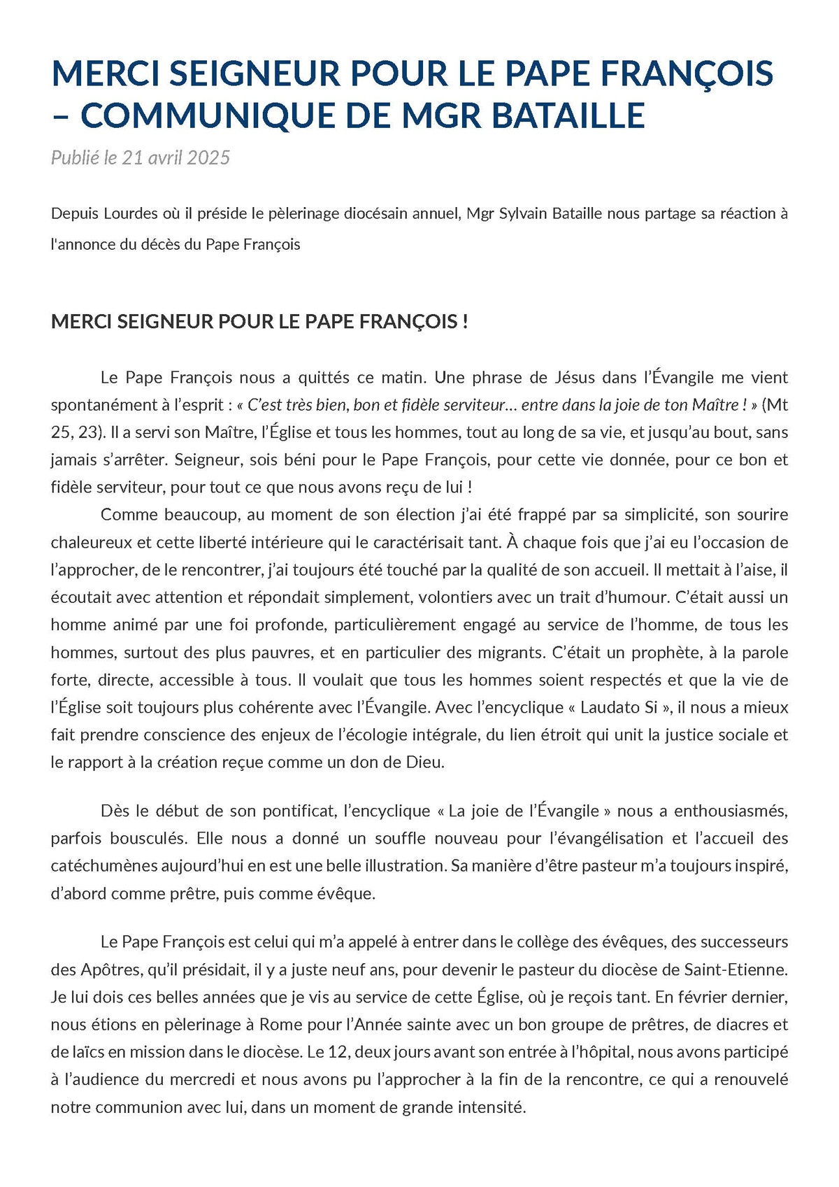 Home / News / Merci Seigneur pour le Pape François