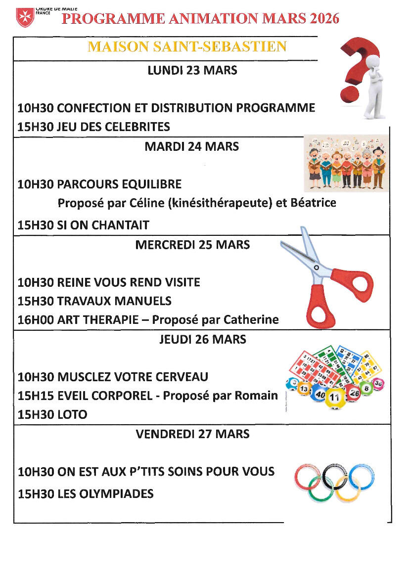 🌷 ANIMATIONS DE LA SEMAINE : MAISON SAINT-SEBASTIEN 🎤