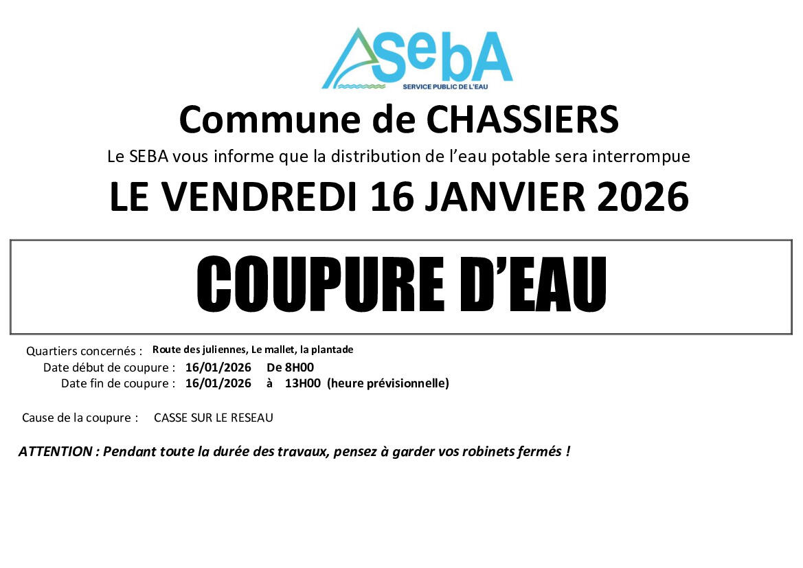 AVIS DE COUPURE D'EAU CHAISSERS 16/01/2026