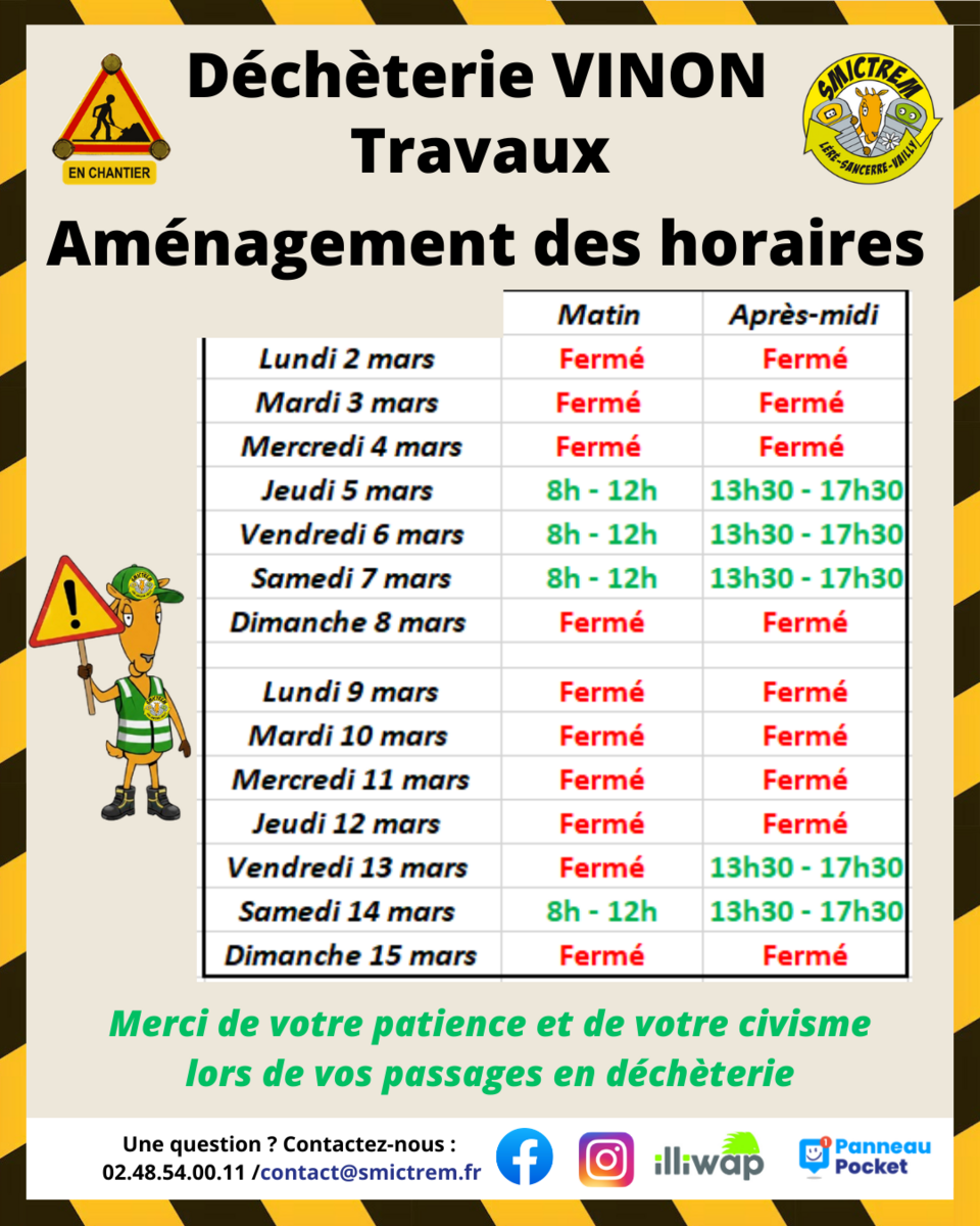 🚧👷♻ Actualité Déchèterie de VINON 🚧👷♻