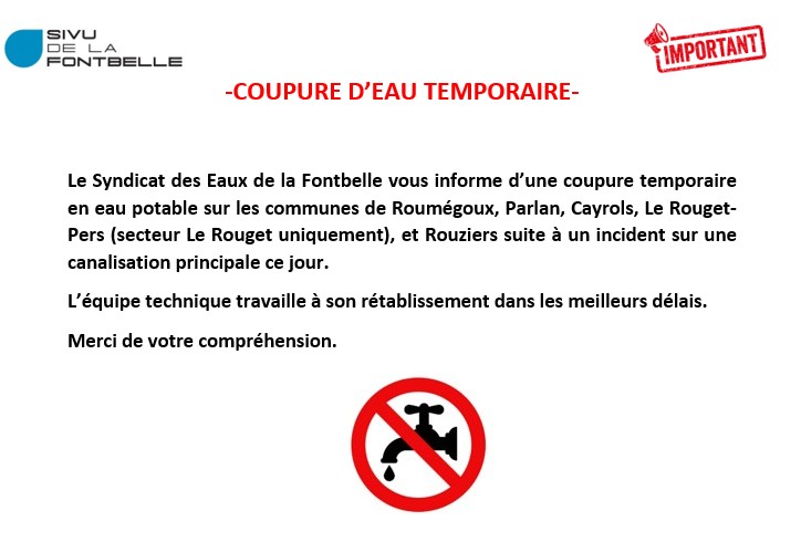 COUPURE D'EAU TEMPORAIRE SUR PLUSIEURS COMMUNES