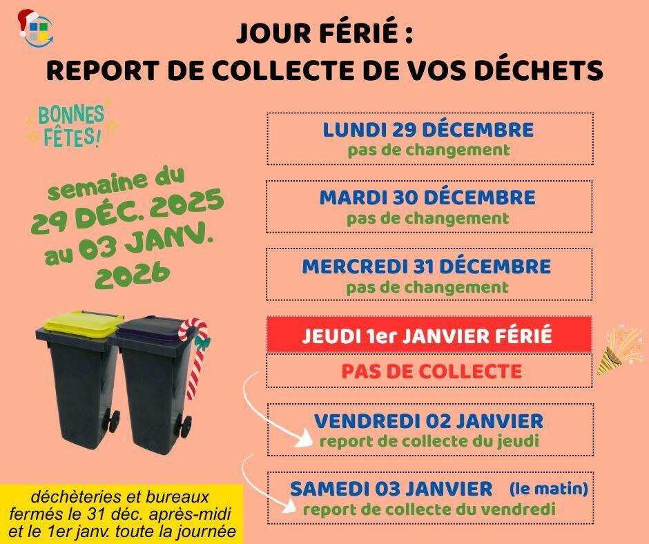 🎄  SERVICE DÉCHETS MODIFIÉ DURANT LES FÊTES DE FIN D'ANNÉE   🎄