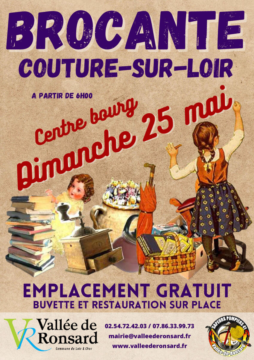 Brocante dans le centre bourg de Couture-sur-Loir, commune déléguée de Vallée de Ronsard.