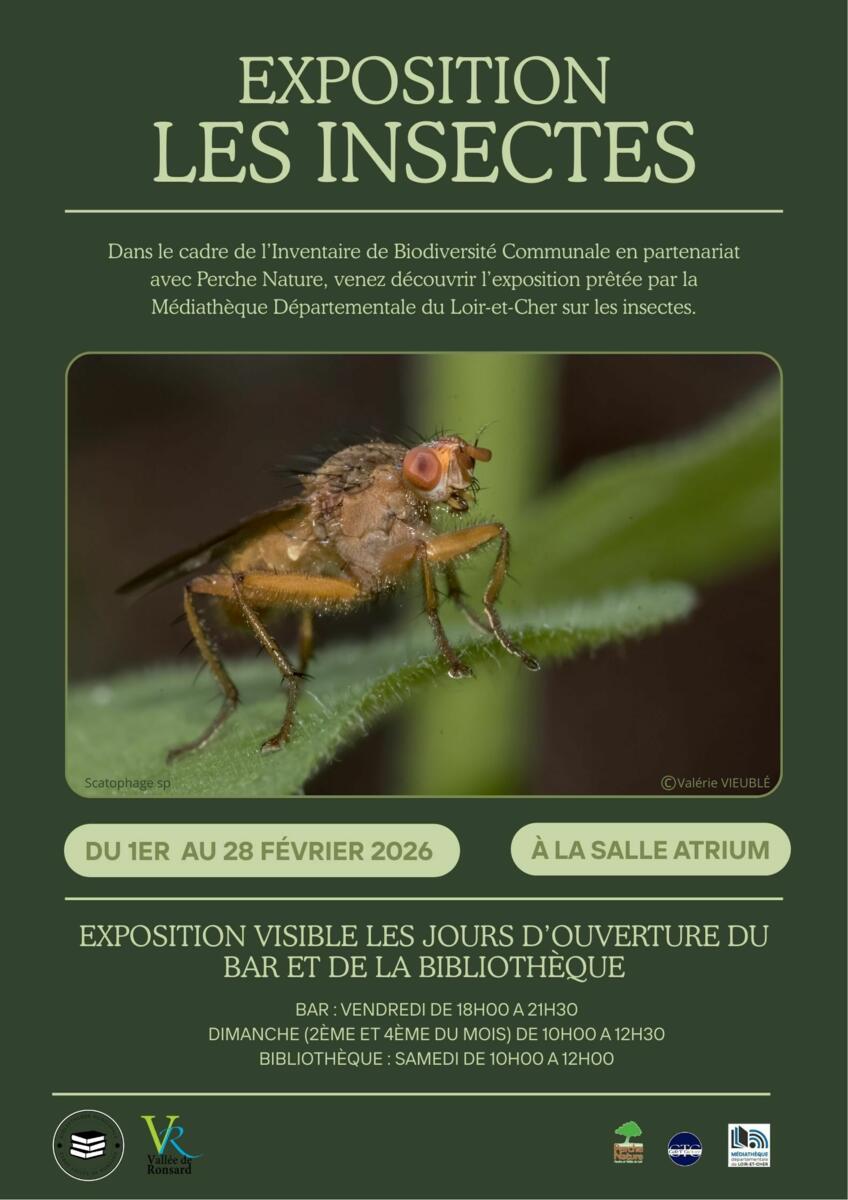 Dans le cadre de l' Inventaire de Biodiversité Communale en partenariat avec Perche Nature, venez découvrir l'exposition prêtée par la Médiathèque Départementale du Loir-et-Cher sur les insectes.