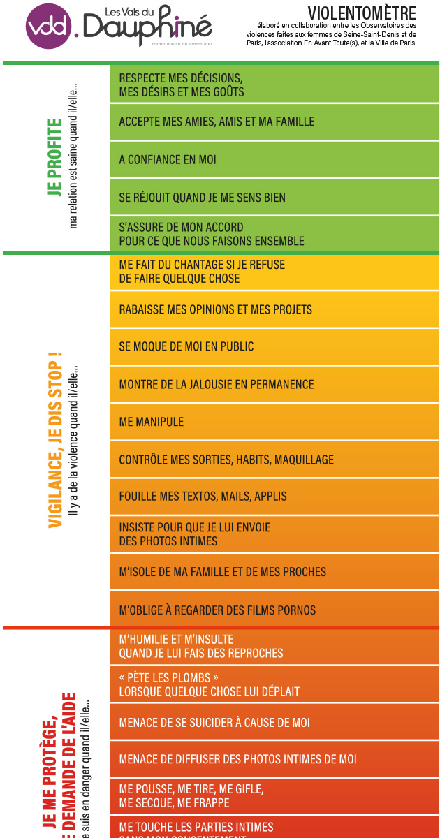 *Le Violentomètre est un outil de sensibilisation. Il permet de mesurer le niveau de violence dans une relation et d’encourager la prise de conscience.