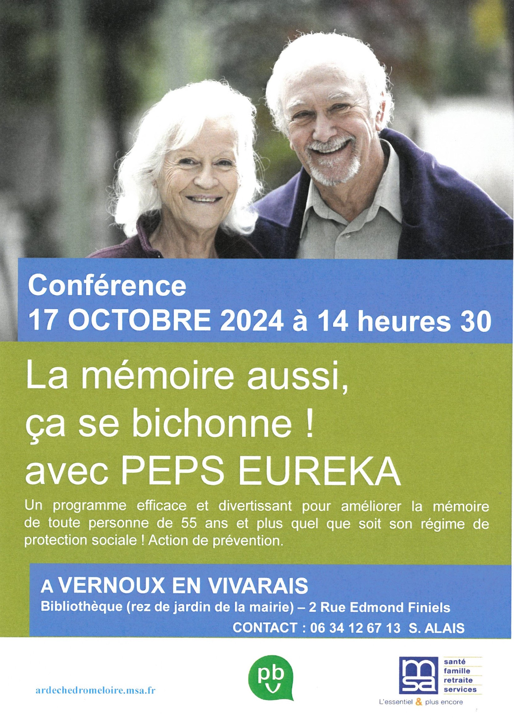 Your town hall / News / Conférence » La mémoire aussi, ça se bichonne ! » avec PEPS EUREKA 17 octobre 2024 14h30