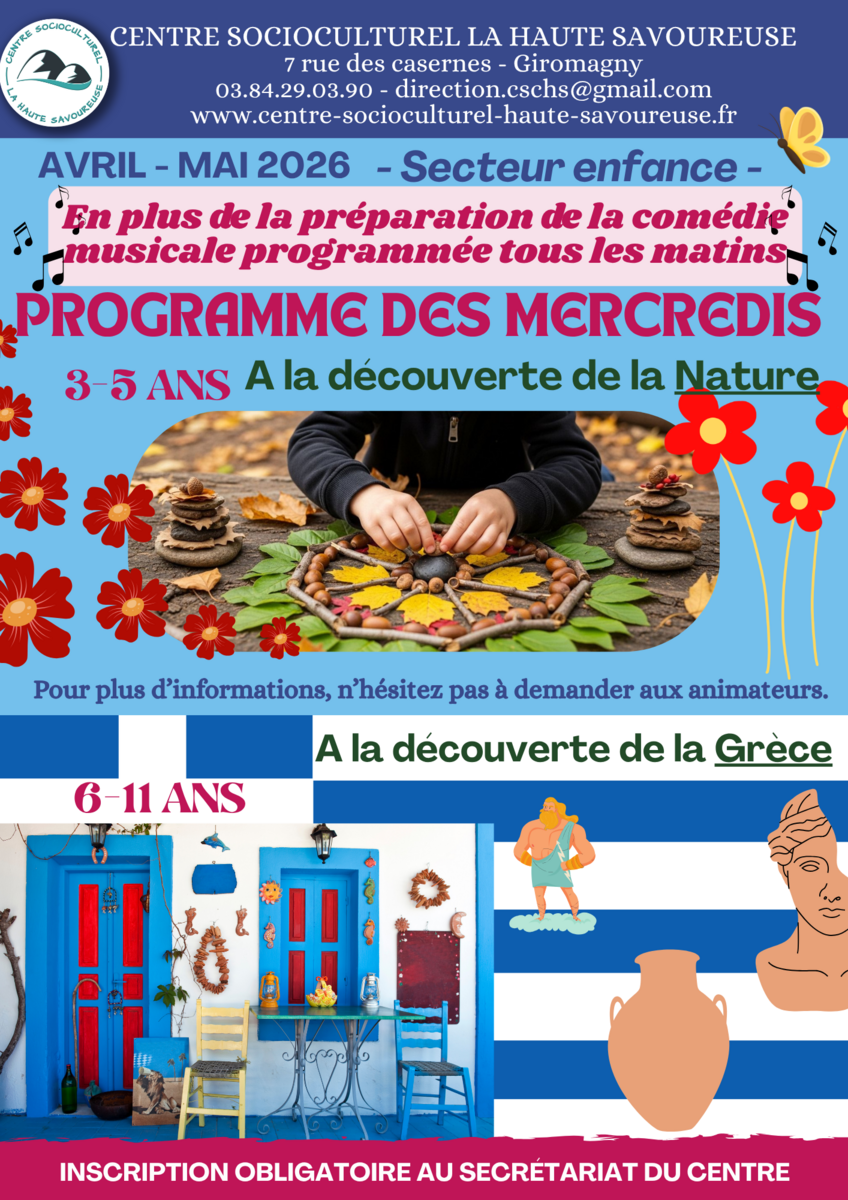 Secteur enfance CSCHS – Programme des mercredis avril/mai