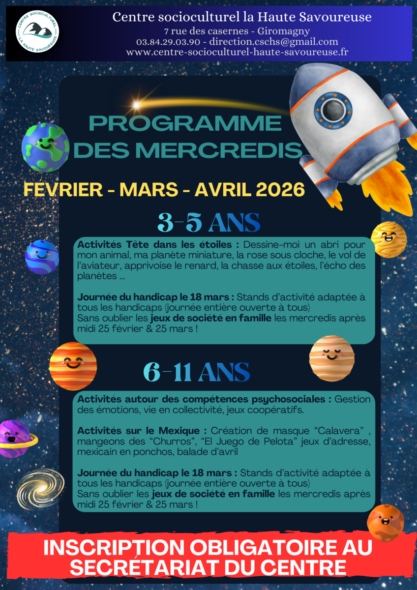 🌟 Mercredis au Centre Socioculturel La Haute Savoureuse – Février à Avril 2026 🌟