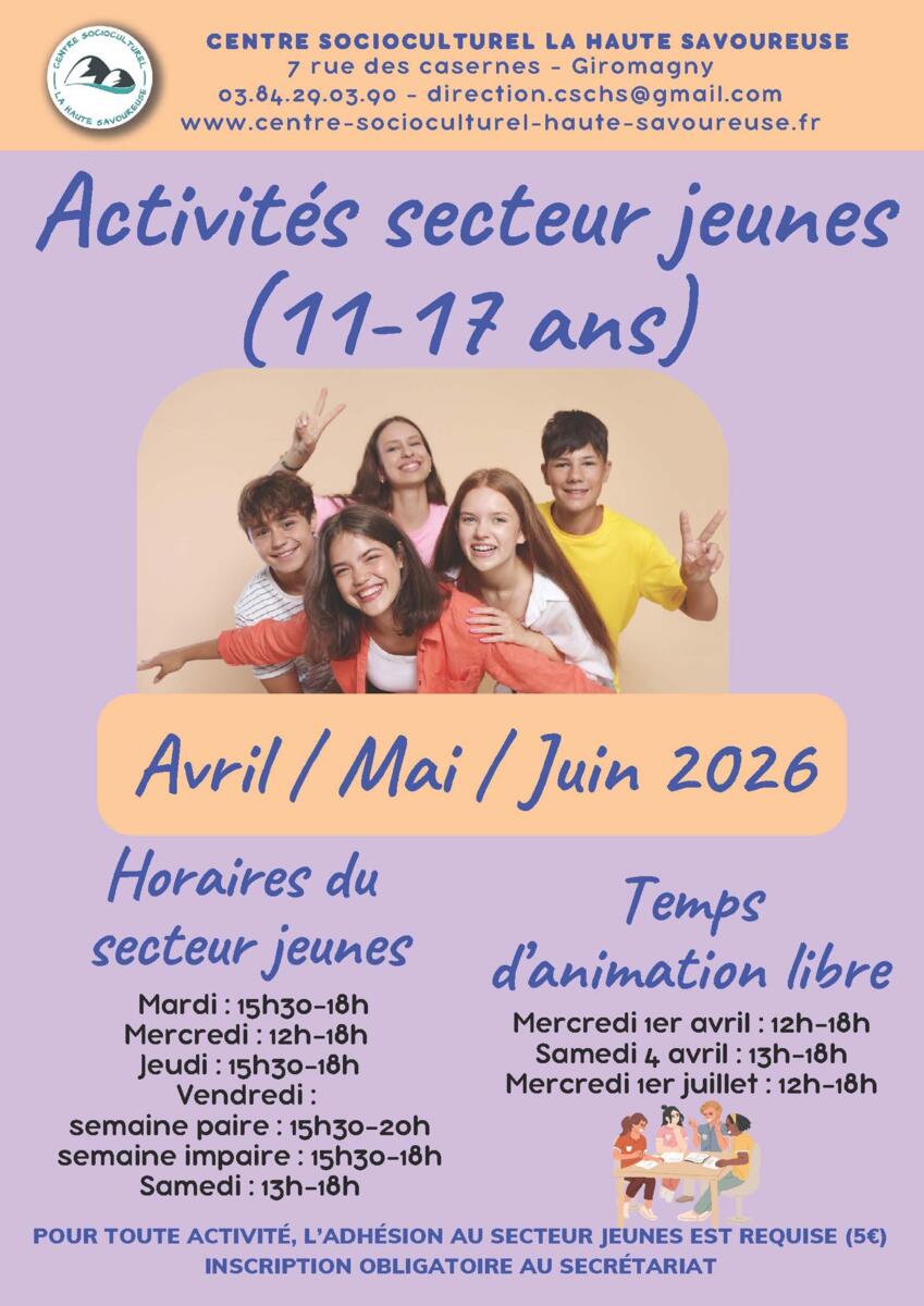 Info secteur jeunes Centre Socioculturel Haute Savoureuse