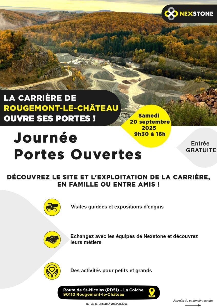 • Carrière Nexstone – Samedi 9h30 Ă  16h : Visites guidĂ©es, exposition d’engins, animations.