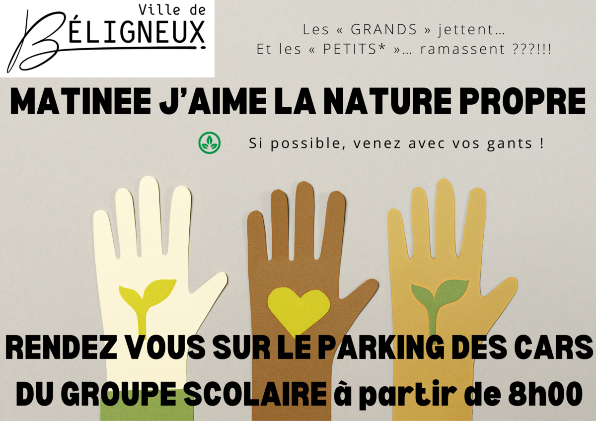 Le conseil municipal des enfants, la société de chasse de Béligneux, conjointement avec la municipalité, l'association Défi Trek et le sou des écoles participent à l'opération nationale de ramassage des déchets, lors de la journée  "j'aime la nature propre".
