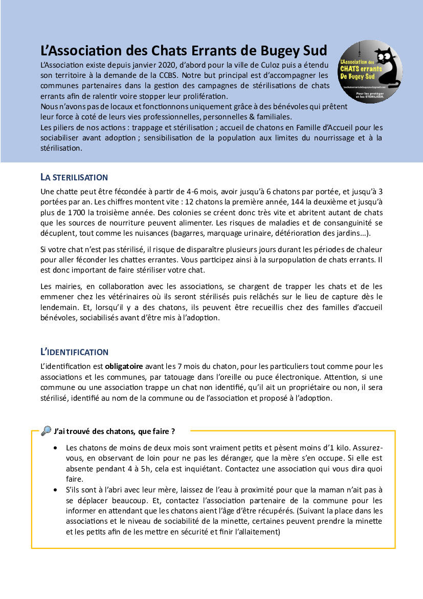 📢 L'Association des Chats Errants de Bugey Sud en partenariat avec la CCBS nous informent :