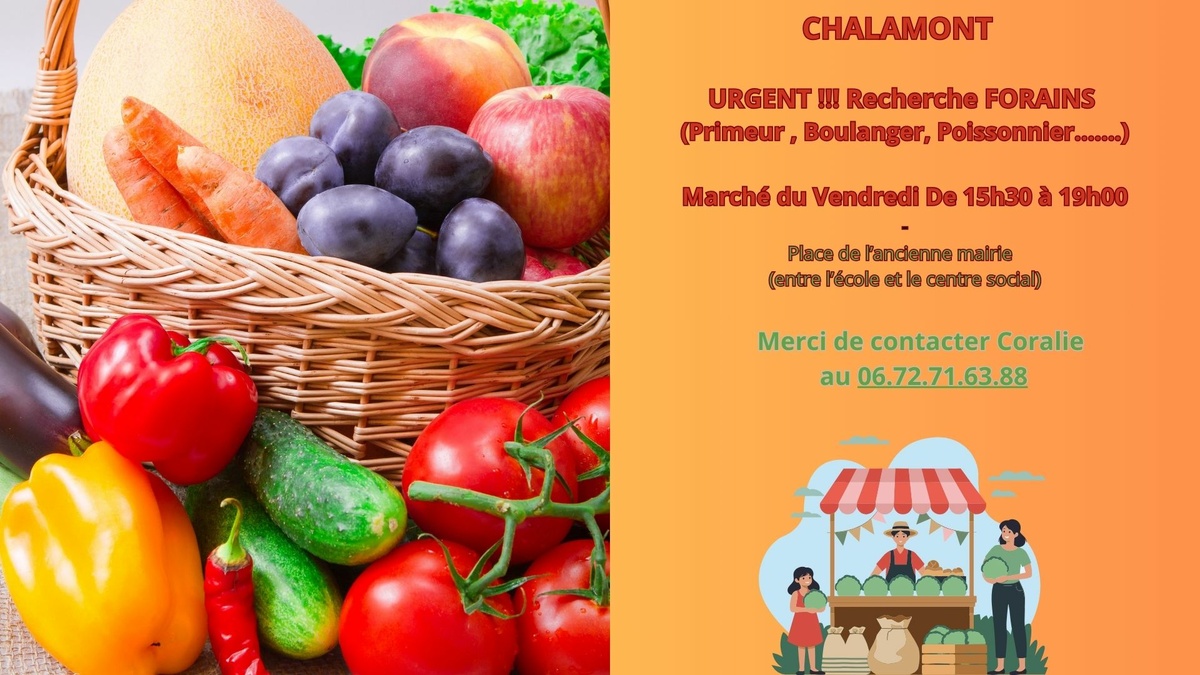 URGENT-RECHERCHE FORAINS MARCHE HEBDOMADAIRE CHALAMONT