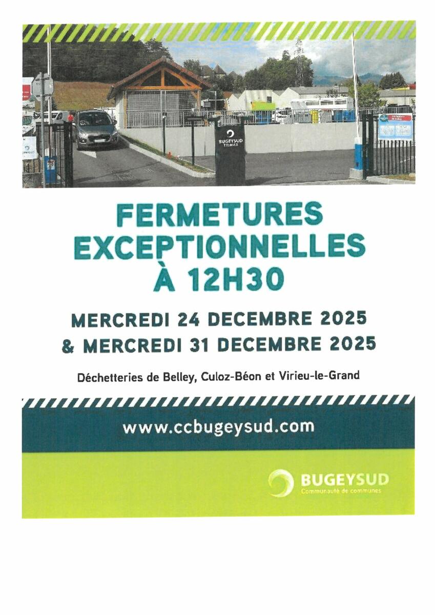 FERMETURES EXCEPTIONNELLES DECHETTERIES