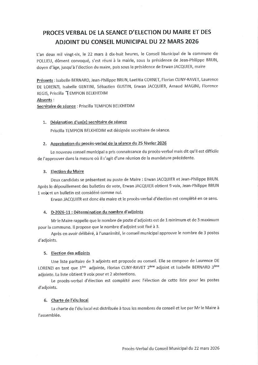 Procès Verbal : Conseil Municipal du 22 Mars 2026