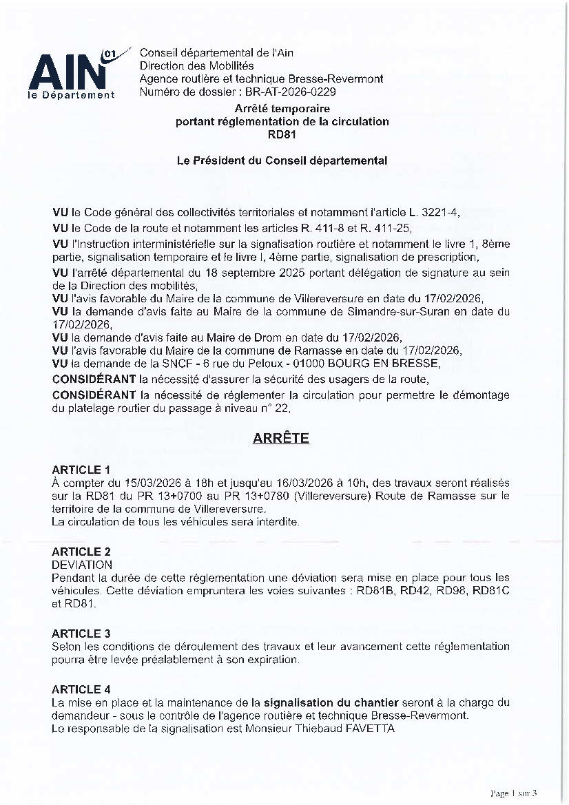 Déviation passage à niveau 15 au 16 mars