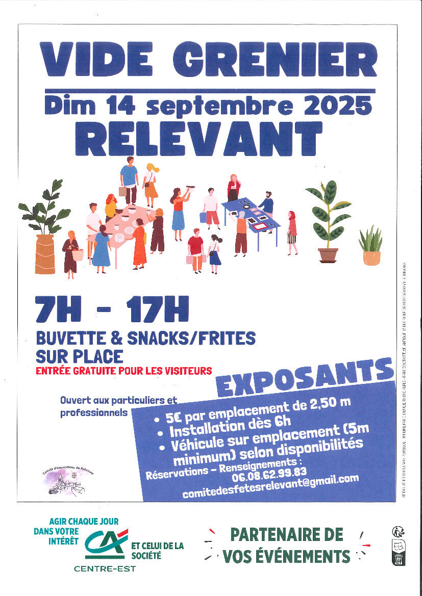 VIDE GRENIER DIMANCHE 14 SEPTEMBRE 2025 A RELEVANT