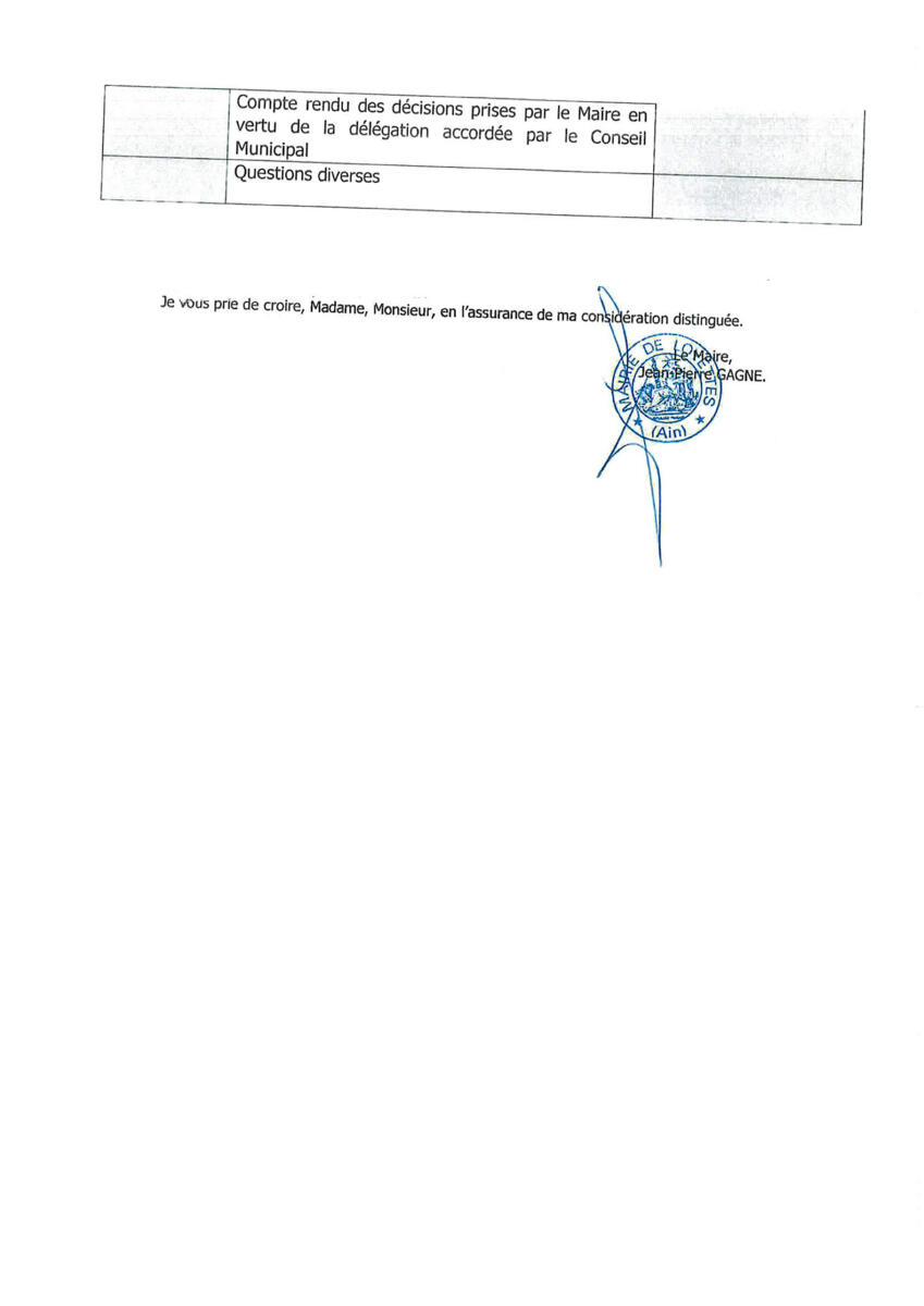 La prochaine séance du conseil municipal se tiendra