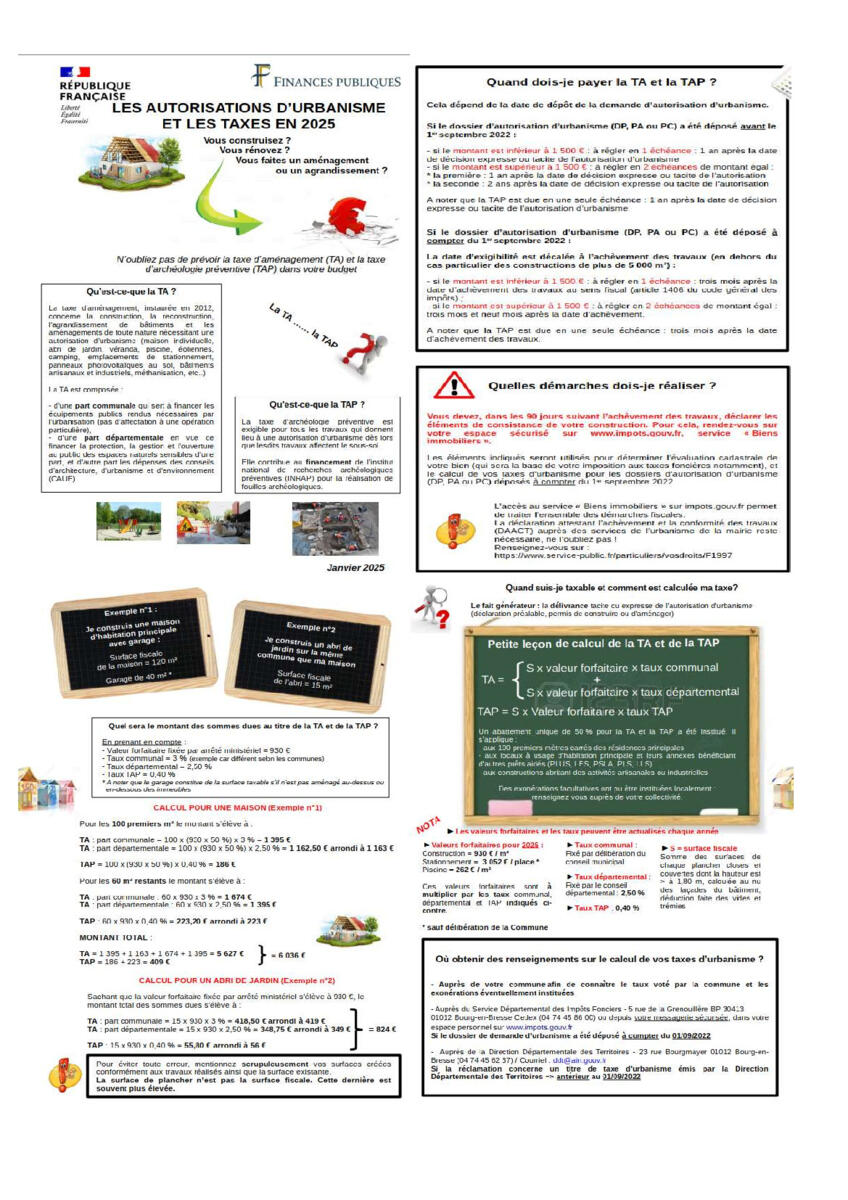 Su ayuntamiento / Noticias / INFORMATION AUTORISATIONS D'URBANISMES ET CALCUL DES TAXES
