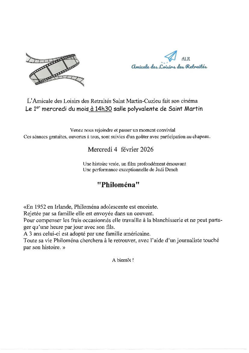 L'ALR Cinéma le 04 février "Philoména"