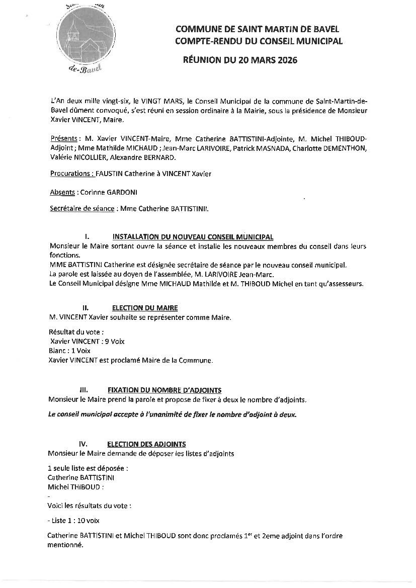 Compte-rendu du Conseil Municipal du 20 mars 2026