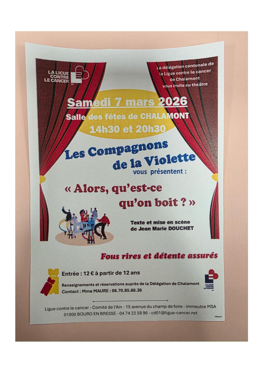 THEATRE LIGUE CONTRE LE CANCER 2/3/26 THEATRE LIGUE CONTRE LE CANCER Source : Mairie de Saint-Nizier-le-Désert