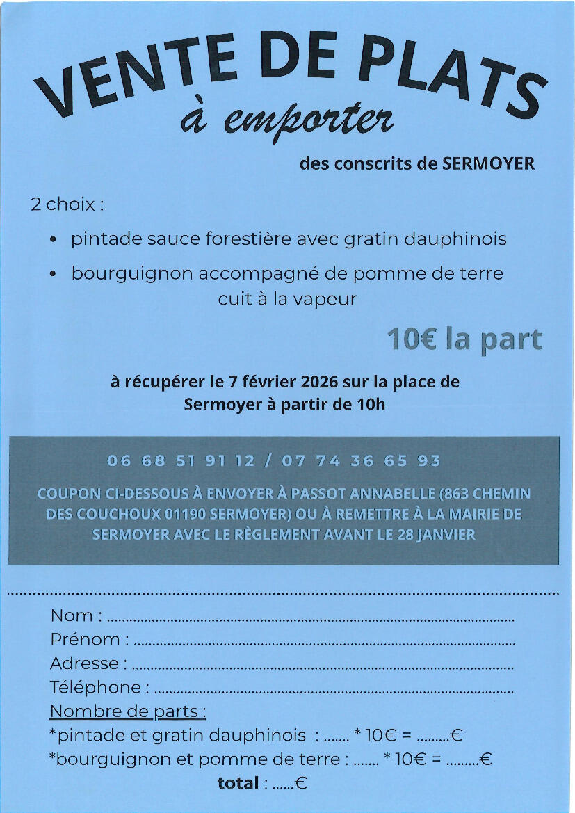 Conscrits de la 6 : vente à emporter