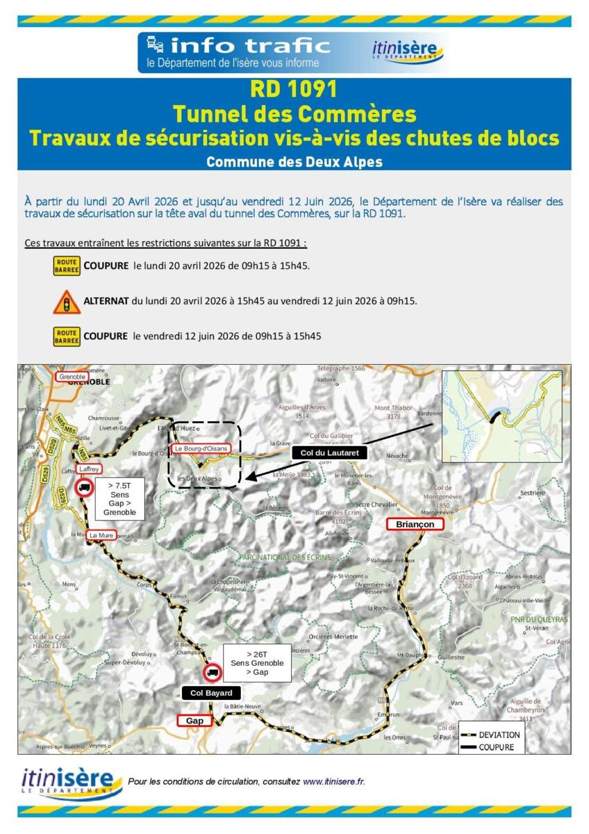 Lindi 20 avril 2026 - route coupée en direction de Grenoble