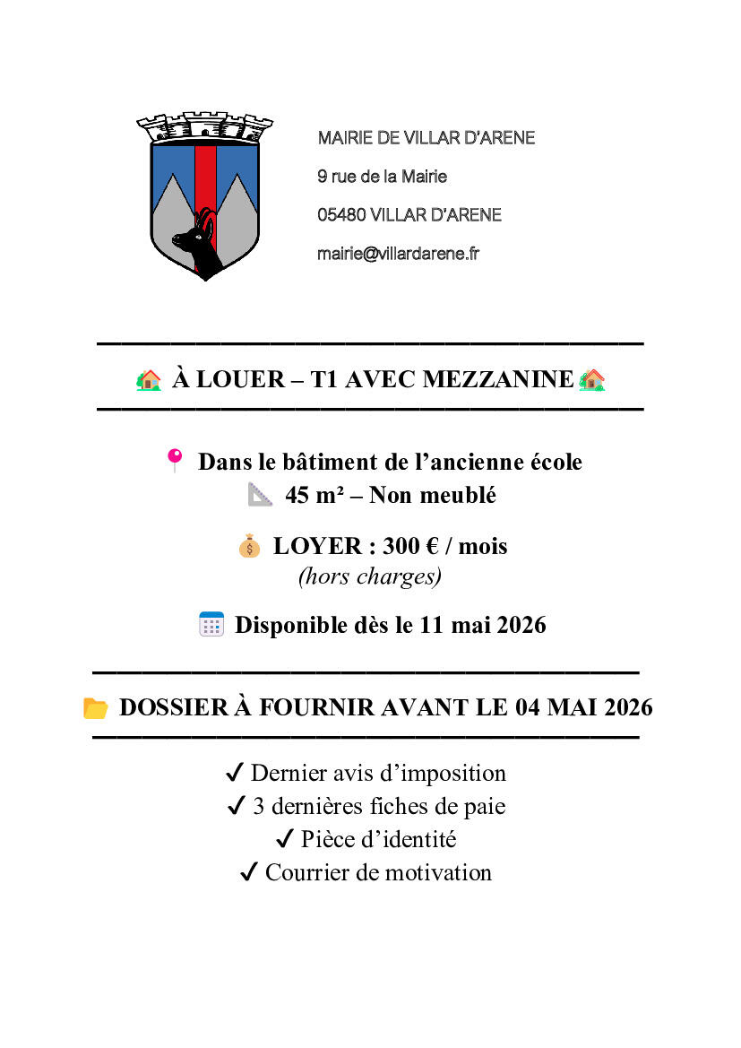 Appartement disponible à la location à Villar d'Arène