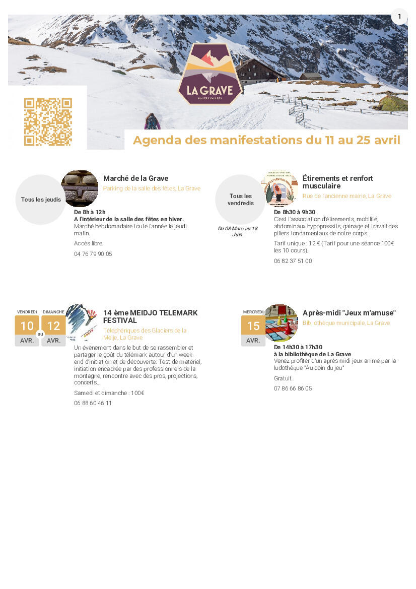 Agenda des animations au Pays de La Meije 10/4/26 Cliquez ICI pour découvrir l'agenda des animations😉 Belle journée
