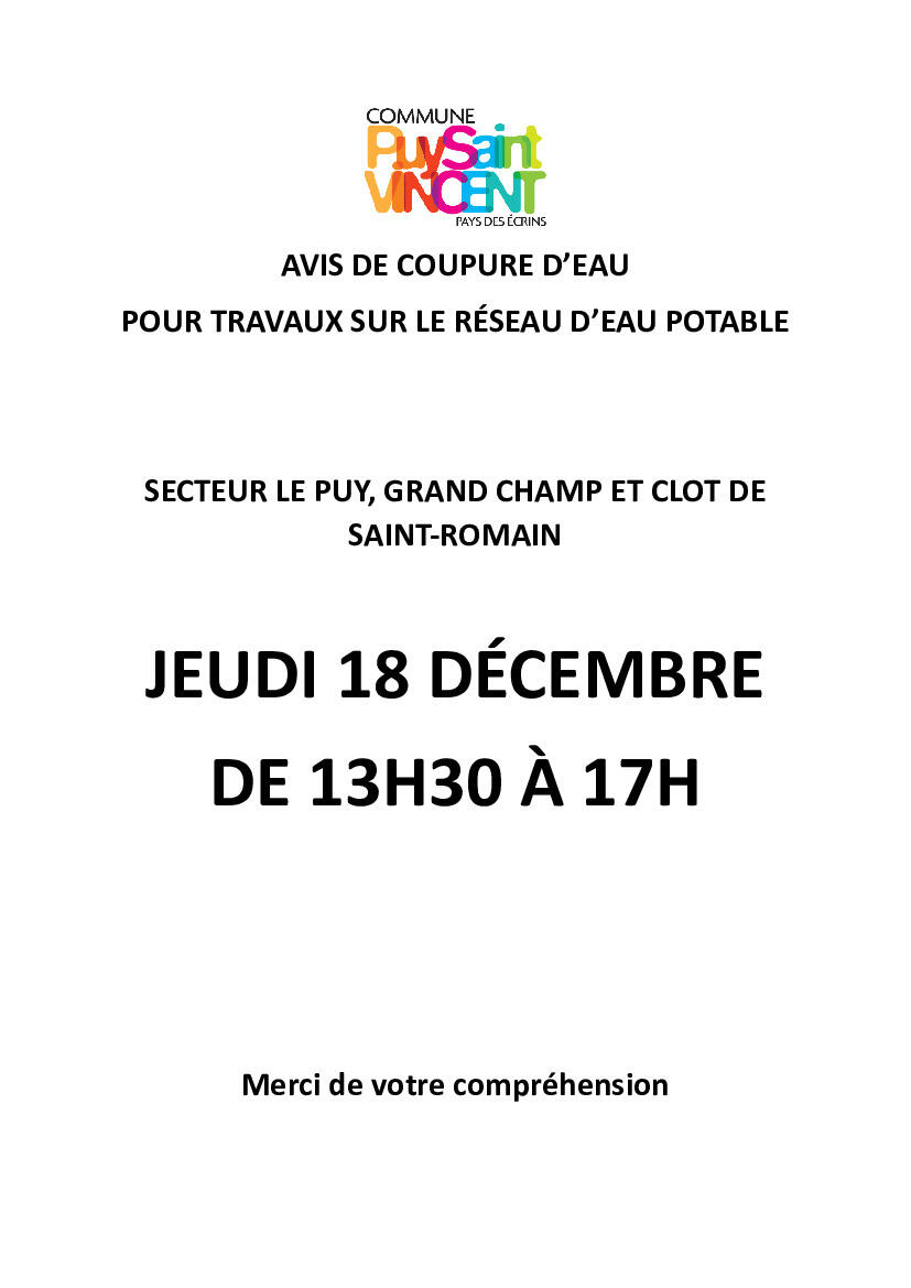 COUPURE D'EAU POUR TRAVAUX SUR RESEAU D'EAU POTABLE