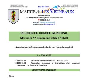 L’article CONVOCATION CONSEIL MUNICIPAL DU 17/12/2025 est apparu en premier sur Mairie les Vigneaux.