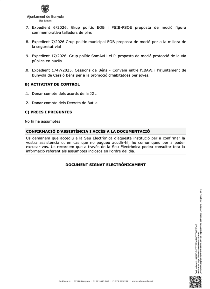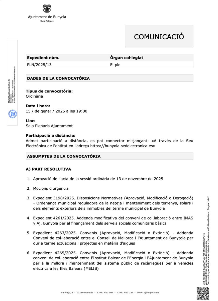 Su ayuntamiento / Noticias / ✨🏛️ COMUNICAT DE L’AJUNTAMENT - PLE MUNICIPAL 🏛️✨