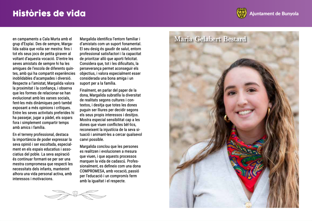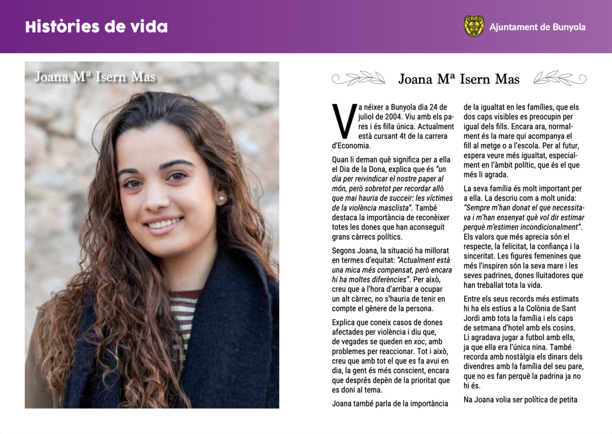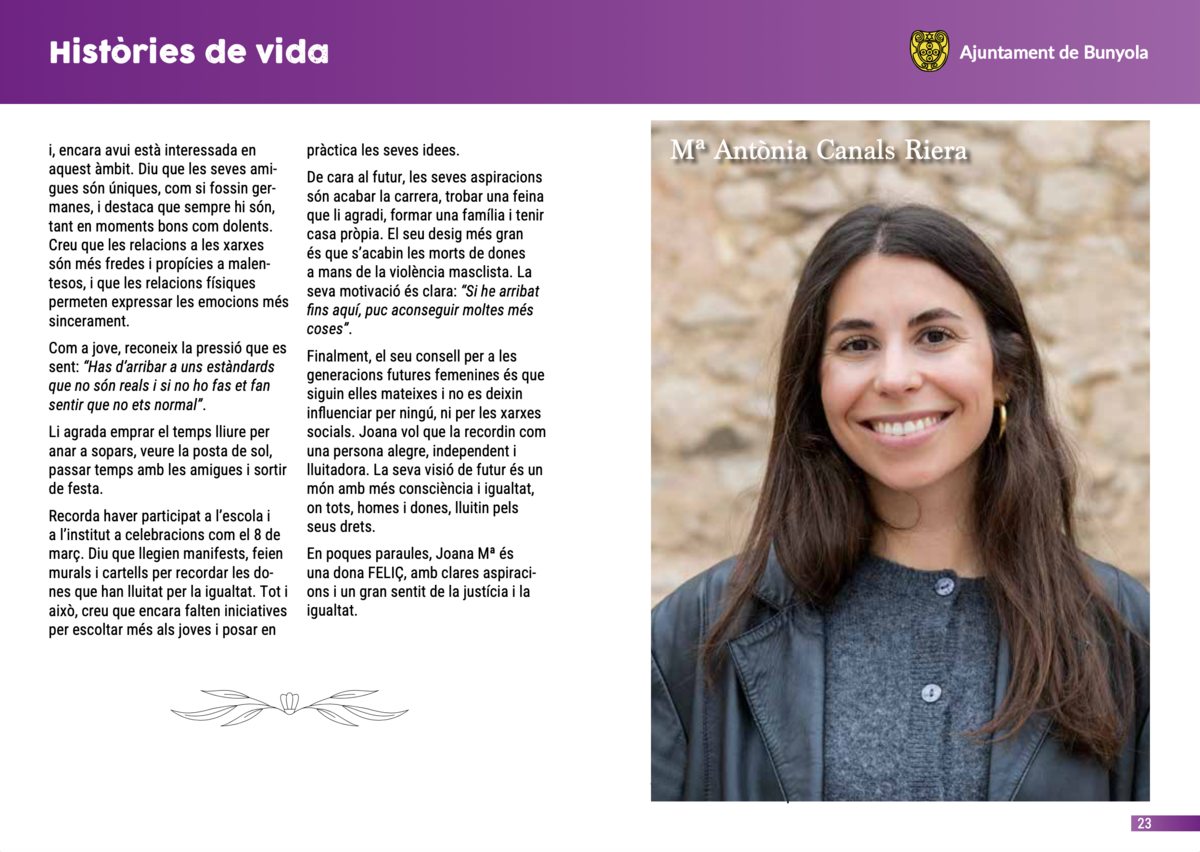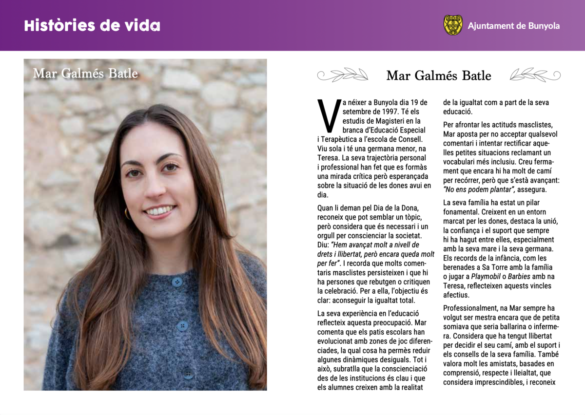 Cada història és única, però totes tenen un fil en comú: la manera de viure, de pensar i de sentir d’unes dones joves que formen part del present i del futur de Bunyola.
