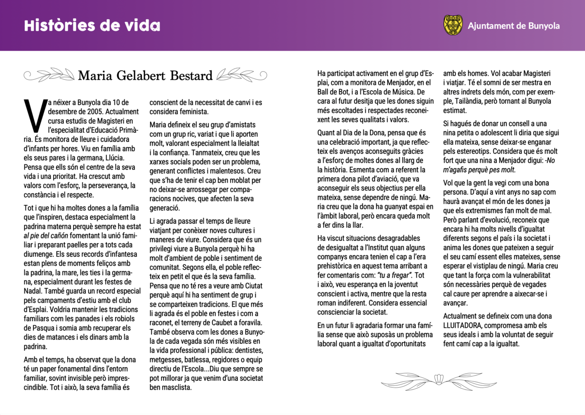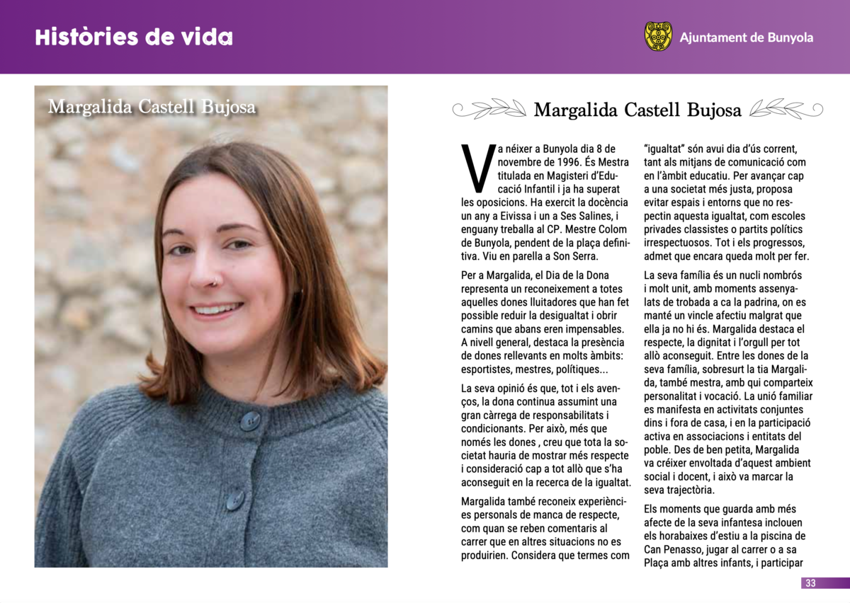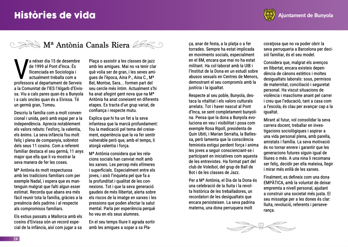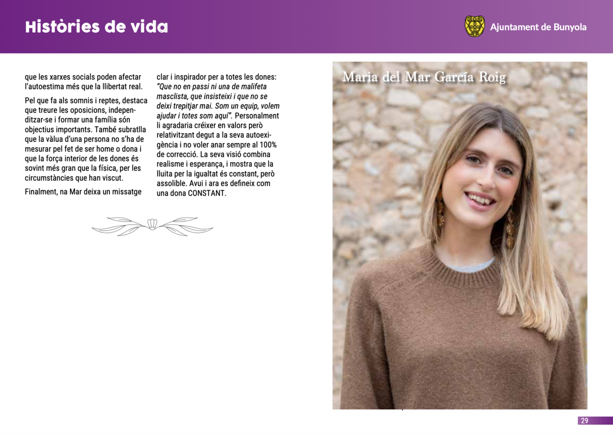 Cada història és única, però totes tenen un fil en comú: la manera de viure, de pensar i de sentir d’unes dones joves que formen part del present i del futur de Bunyola.