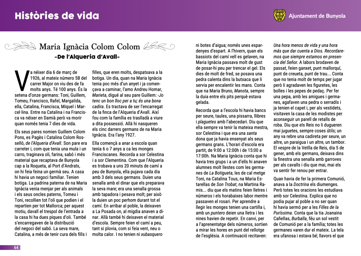En aquests testimonis hi ha memòria, aprenentatge, superació i també molta vida quotidiana: la família, la feina, el poble, les tradicions… tot allò que ens defineix i ens uneix.