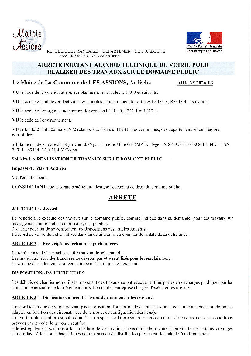 ARRÊTÉ PERMISSION DE VOIRIE