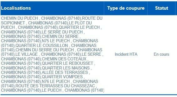 Coupure d'électricité CHAMBONAS