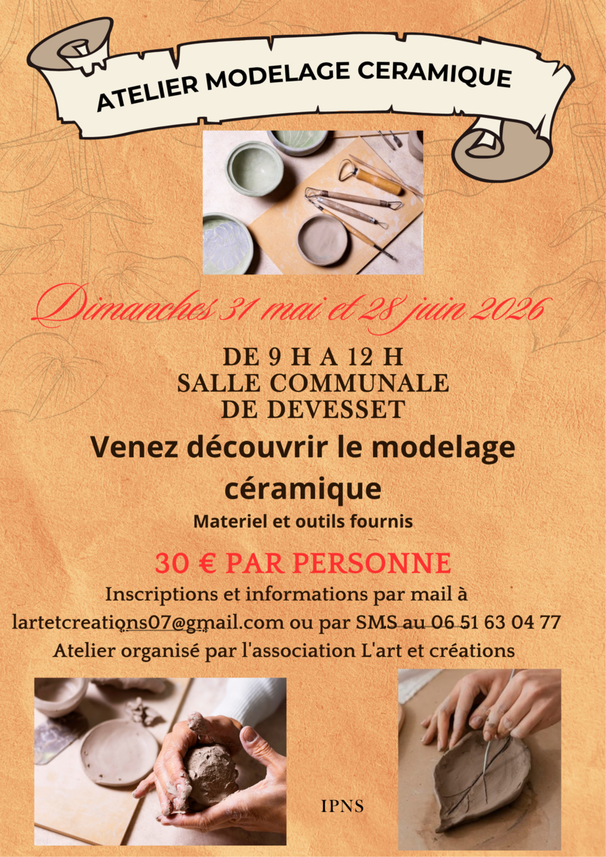 Atelier modelage céramique