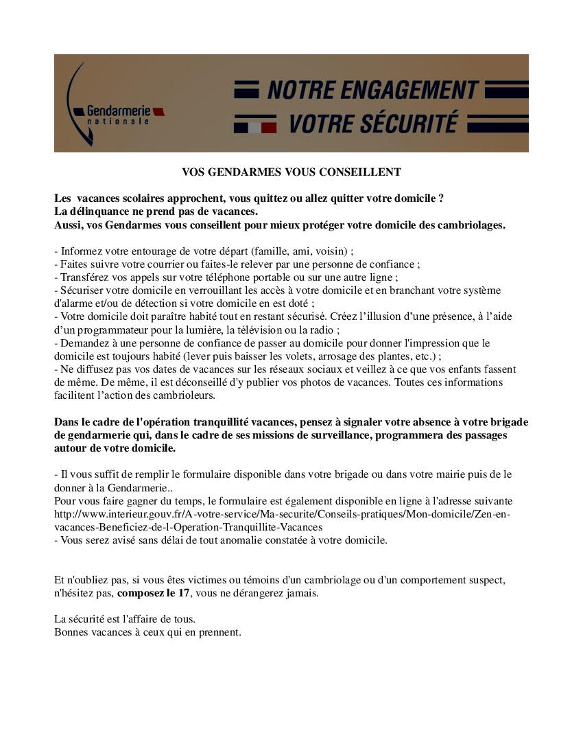 La brigade de gendarmerie de Saint-Agrève vous informe et vous conseille.