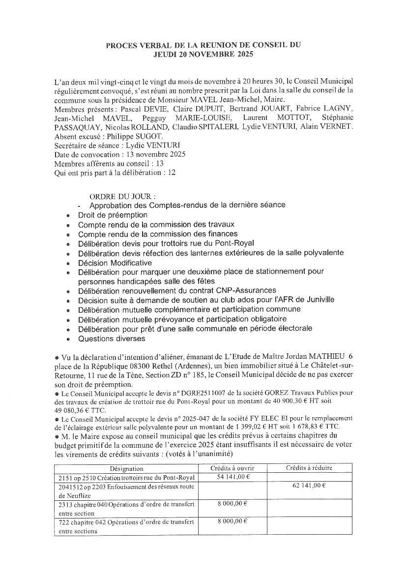 PV de la réunion du Conseil Municipal du 20 novembre 2025
