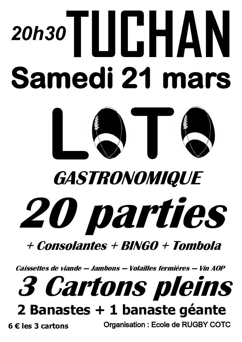 📢L'école de Rugby organise un LOTO à la Salle Polyvalente ce Samedi 21/03 à 20h30 de nombreux lots seront à gagner, venez nombreux!📢