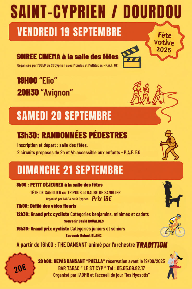 Le comité des fêtes de Saint-Cyprien organise la fête votive avec des animations du 19 au 21 Septembre.